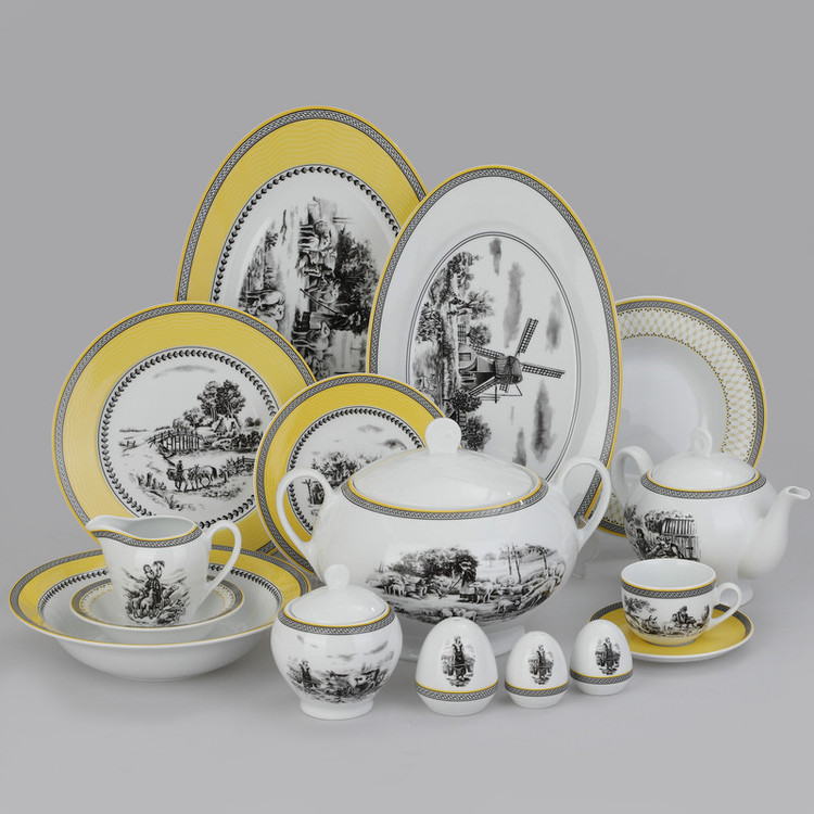 سرویس چینی 102 پارچه غذا خوری چینی زرین ایران سری ایتالیا اف مدل ویلیج درجه یک