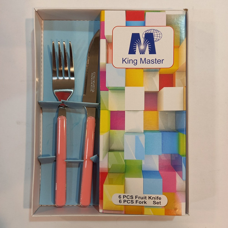 ست کارد و چنگال میوه خوری 12 پارچه کینگ مستر مدل رنگی کد 301