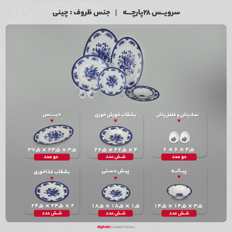 دیس , بشقاب غذاخوری , بشقاب خورشخوری , پیشدستی , نمکپاش و فلفلپاش