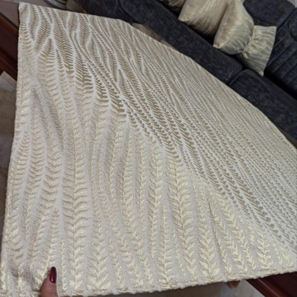 رومیزی سابز بزرگ پارچه بسیار شیک مناسب برای استفاده میز تلویزیون و میز بزرگ و میز ناهار خوری و.. طول 148cm جنس شانل زر بافت رنگ کرم که با هر رنگی داخل منزل ست میشود