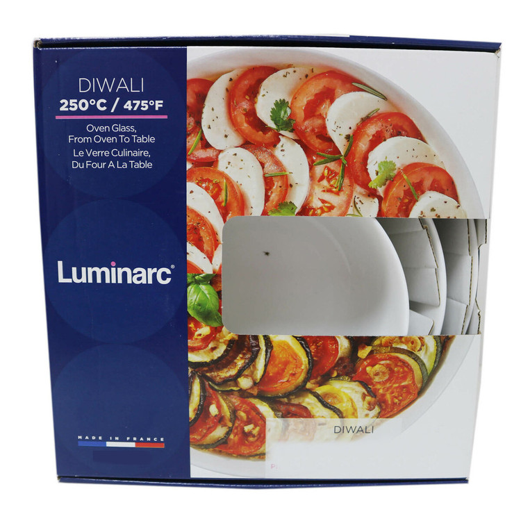 دیس پیتزای لومینارک مدل دیوالی ظرفی شکیل برای پخت و سرو انواع غذا و پیتزا است.این ظرف با کیفیت تحمل دما تا 250 درجه سانتی گراد را دارد.مناسب برای مایکروفر-فر (تا 250 درجه)- و همچنین سرو غذا میباشد.قطر این دیس گرد 32 سانتی متر و عمق آن حدود 2.5 سانتی متر است.این ظرف ساخت فرانسه میباشد.