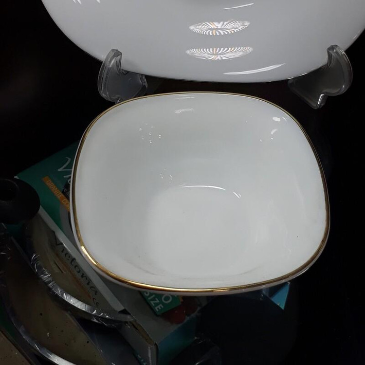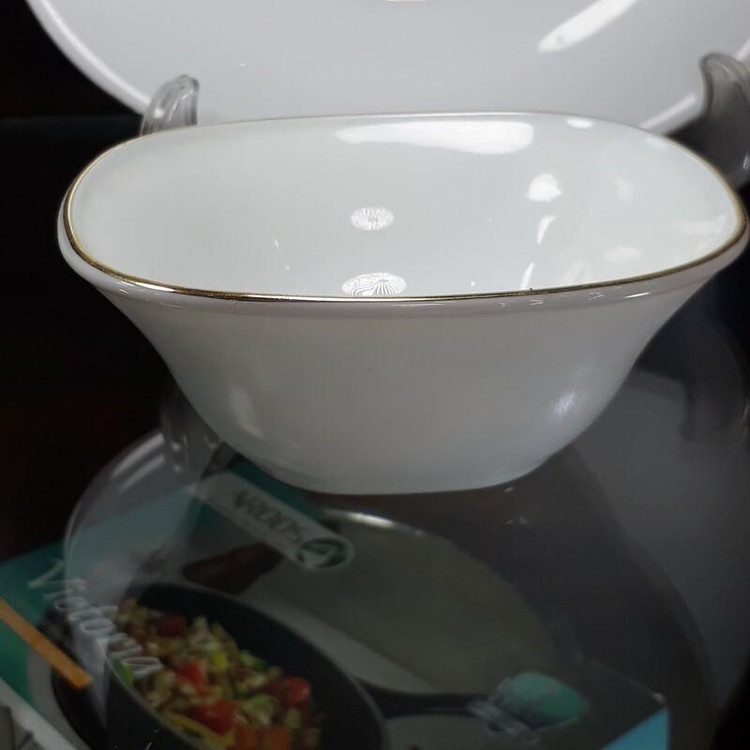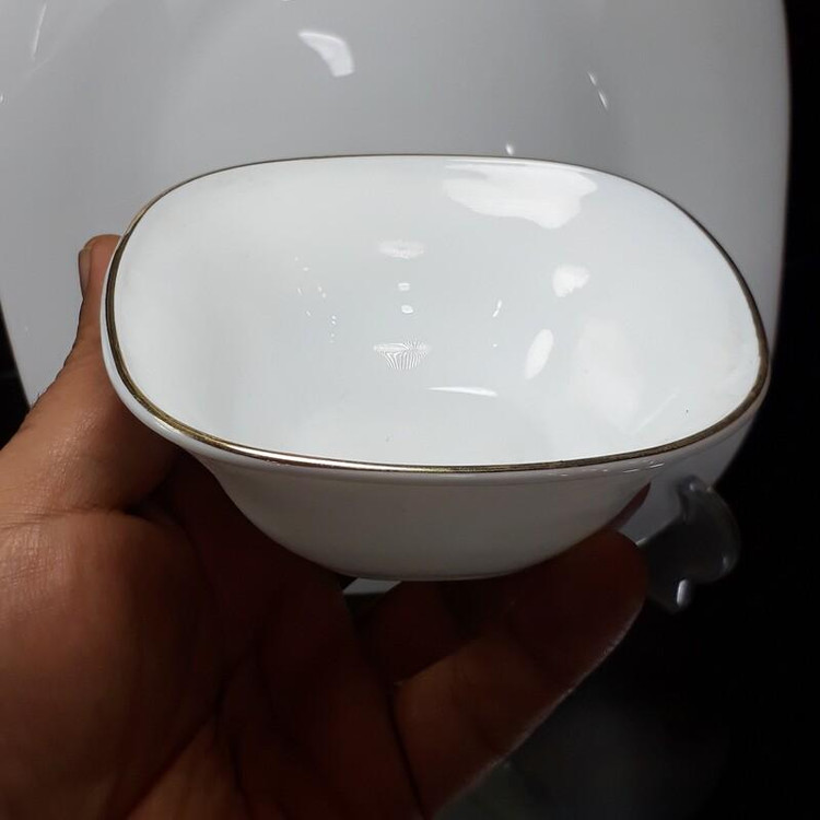پیاله ماست خوری ارکوپال سفید لب طلا قالب مربع