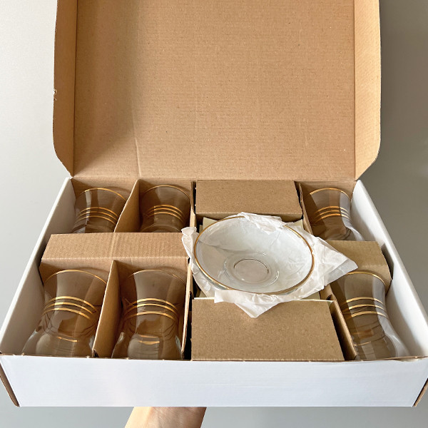 شامل 6 عدد استکان لب طلا و 6 عدد نعلبکی لب طلا برند پاشاباغچه ترکیه