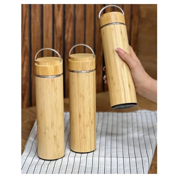 فلاسک نیم لیتری وارداتی بدنه بامبو داخل استیل فیلتر دار