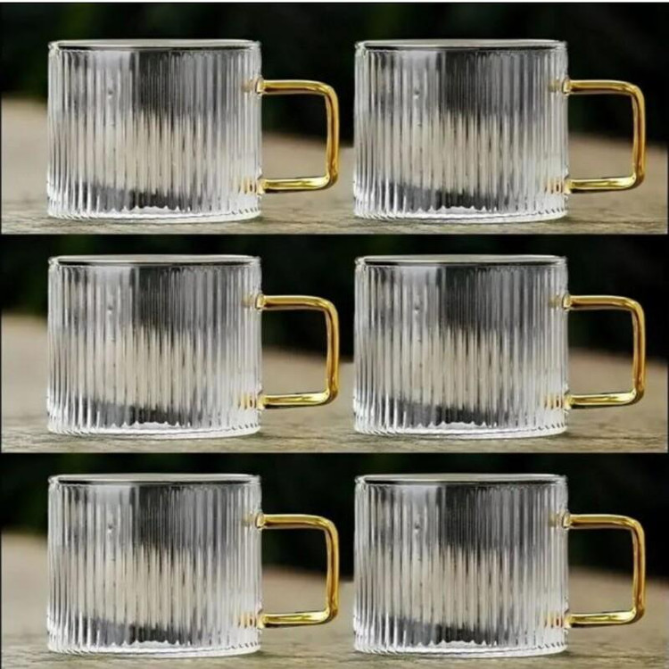 فنجان بدون رنگ و دسته طلایی پیرکس به صورت دست 6 عددي با ظاهر و رنگ جذاب برای سرو انواع دمنوش ،چاي ،قهوه مناسب هستند.این محصول با ظرفیت 130 میلی لیتری ، با دسته طراحی شده است و قابل شستشو در ماشین ظرفشویی نیز می باشد.