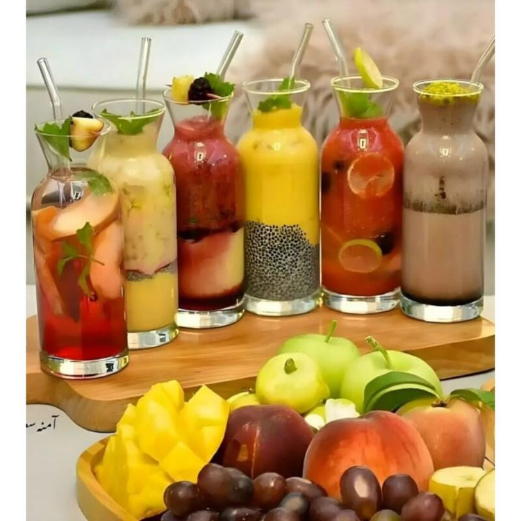 لیوان اسموتی ویلیج پاشاباغچه کد 43804 بهمراه نی بلوری (6 عدد)