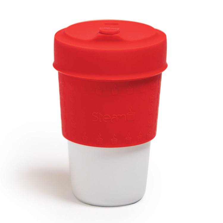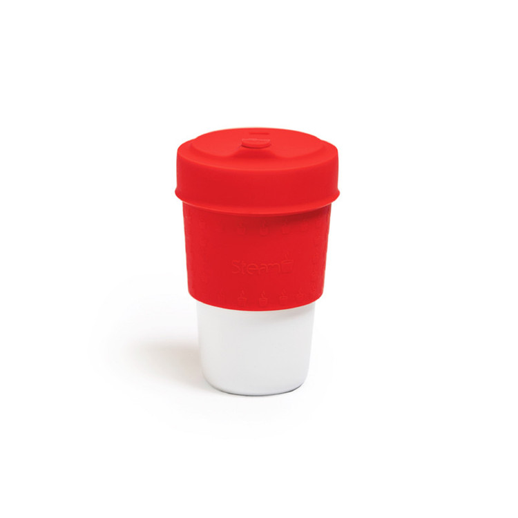 ماگ چینی زرین با روکش سیلیکونی استیم، همراه شما در سفر، هنگام ورزش، پشت میز کار، داخل ماشین ، در پیک نیک و هر کجا که شما بخواهید! نوشیدنی خود را سردِ سرد، گرم ِگرم به هر کجا که میخواهید ببرید و از آن لذت ببرید. ماگهای استیم رنگینکمانی از شادترین و در عین حال آرام بخشترین رنگها است که مطمئنا شما رنگ دلخواهتان را در بین آنها پیدا خواهید کرد، پس فقط کافی است که شما رنگ خود را انتخاب کنید! این ماگها بدون دسته به راحتی در کوله پشتی، جای لیوانی ماشین و ... جای میگیرند، کمربند سیلیکونی دور آن دمای مطلوبی را برای در دست گرفتن لیوان فراهم میکند. بهعلاوه درپوش روی لیوان کیپ شده و در صورت افتادن از ریختن همه محتویات نوشیدنی شما، جلوگیری میکند. همچنین شما میتوانید ماگ خود را در مایکروفر و ماشین ظرفشویی نیز قرار دهید و با خیالی آسوده از بهداشتی بودن لیوان خود لذت ببرید.