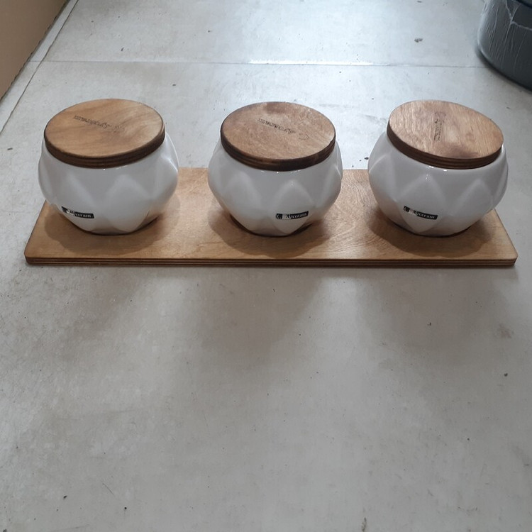 جای ادویه سه عددی زیر چوبی با درب چوب بدنه سرامیک