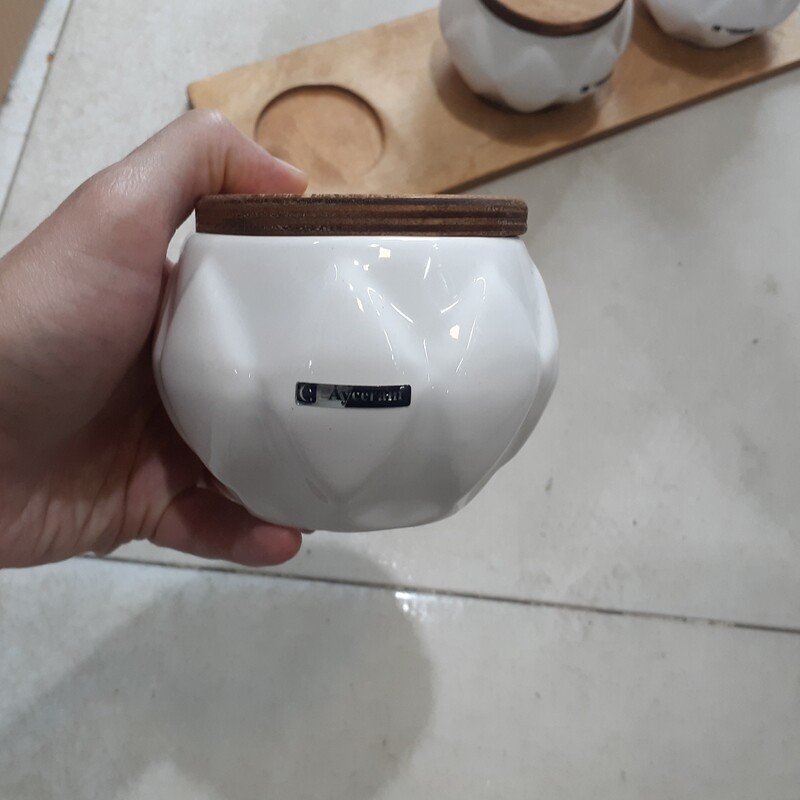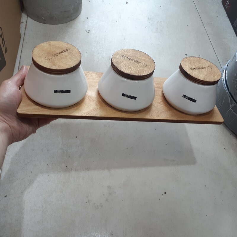 جای ادویه سه عددی زیر چوبی با درب چوب بدنه سرامیک