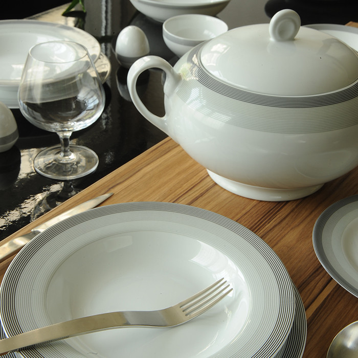 این طرح از زیبا ترین طرح های چینی زرین است که با خطوط مشکی و طوسی محو که طی سالهای اخیر تولید شده اند. طرح سیلور لاینر که در بالا مشاهده می کنید از قالب ایتالیا اف که بشقاب هایی گرد با سایز 25 سانتی , ظروف فوق العاده ای که با لعاب شفاف و طلای ناب مزین شده است برای میزبانی به چشمگیرترین حالت ممکن و طراحی شده برای سبک زندگی امروز هستند.