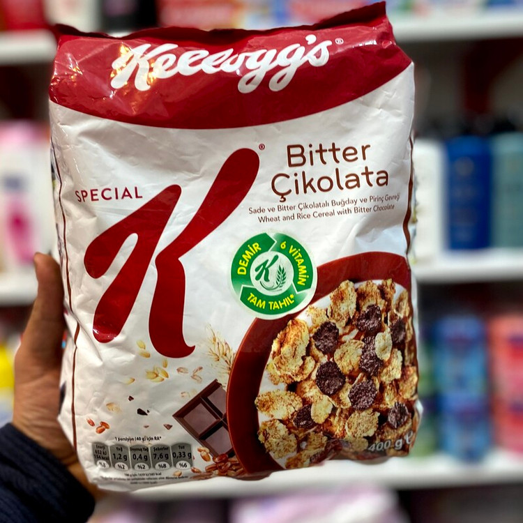 کورن فلکس اسپشیال کی شکلاتی ۴۰۰ گرم Kelloggs Special K از برندهای محبوب این کمپانی است که علاوه بر مقوی و رژیمی بودن، طعم بسیار خوشمزه و بهیادماندنی دارد. این محصول متشکل از تکههای شکلات تلخ، دانههای ترد برنج، گندم خالص و دانههای جو است. هر کاسه از این محصول هم دارای 6 نوع ویتامین از جمله ویتامینهای B6، B12، D و همچنین مواد معدنی، فیبر و غلات سبوسدار میباشد.