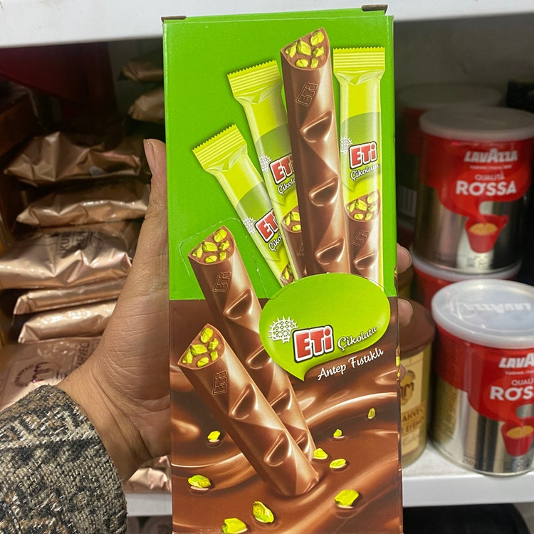 شکلات اتی با مغز پسته قلمی 34 گرمی بسته 16 عددی