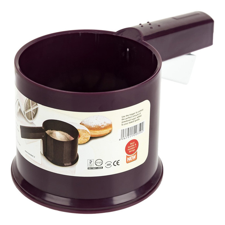 - مناسب برای الک کردن آسان آرد - مناسب برای پخش کردن پودر شکر روی شیرینی و کیک - دارای قابلیت چرخشی بهوسیله دست برای صاف کردن آرد و شکر - دارای یک توری فلزی در کف ظرف - دارای پروانهی پلاستیکی چرخشی برای الک کردن