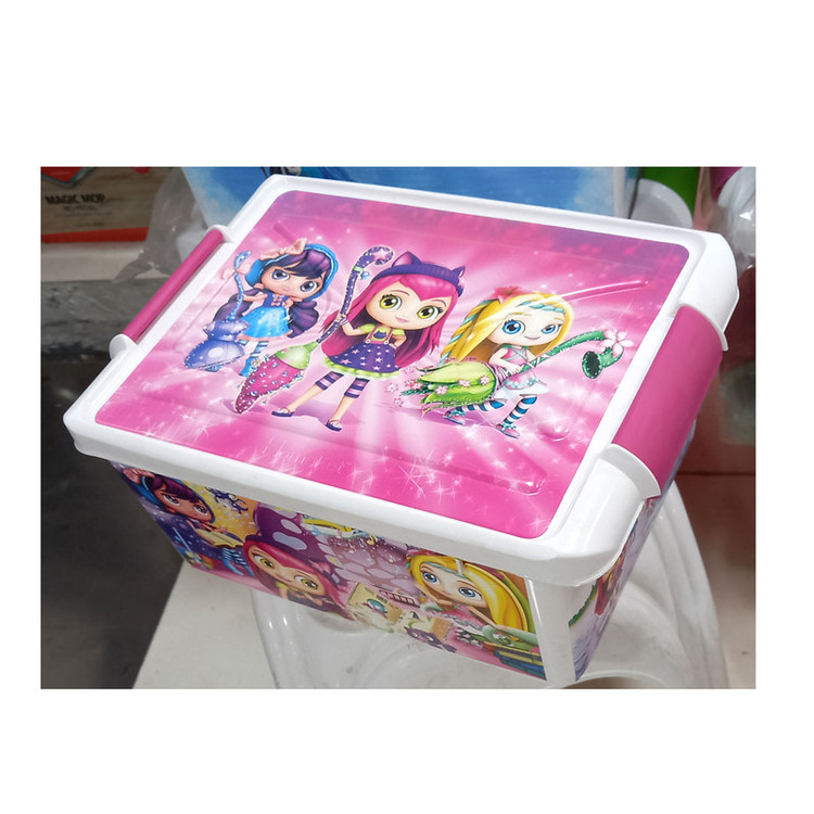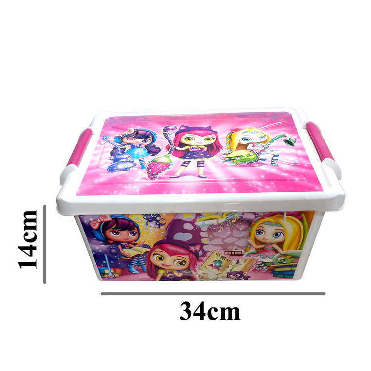 این جعبه بسیار زیبا با طرح شیمر درب دارد. طول و عرض آن 34x23 سانتیمتر و ارتفاع آن 14 سانتیمتر است. بسیار چاپ زیبا و تمیزی دارد.مناسب برای گذاشتن اسباب بازی است.