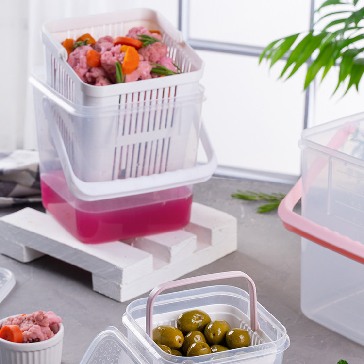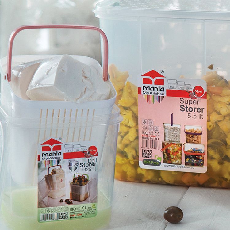 یک ظرف نگهدارنده به همراه یک سبد آبکش و یک در از جنس پلی پروپیلن به گنجایش داخلی 2.750 لیتر، وزن 179 گرم و ابعاد 16 × 16.7 × 16.2 سانتیمتر - BPA Free - قابل بازیافت - دارای تاییدیه انجمن نانو - آنتی باکتریال - ضد گرد و غبار