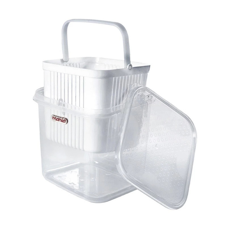 مانیا ظرف و آبکش ترشیجات و لبنیات 114020 سـایز کوچک شامل: یک ظرف یک آبکش و یک در از جنس پلی پروپیلن به گنجایش داخلی 1.125 لیتر، وزن 138 گرم و ابعاد 12.5 × 11.8 × 11.8 سانتیمتر