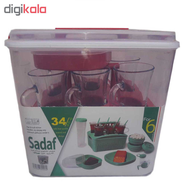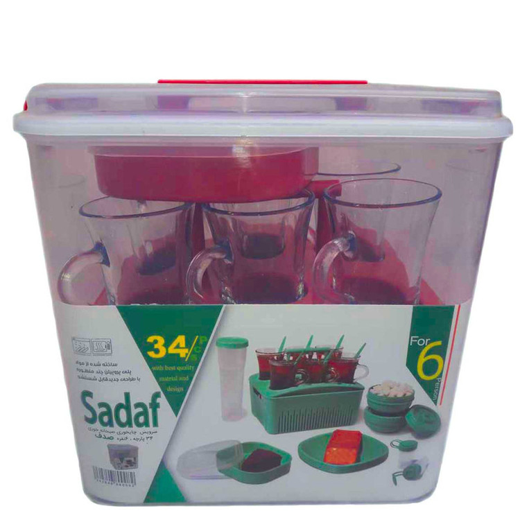 دارای 6 عدد بشقاب دارای 6 عدد چنگال و 6 عدد قاشق دارای 6 عدد لیوان دارای 3 ظرف نگهدارنده و2 عدد نمک پاش دارای یک عدد سبد پلاستیکی