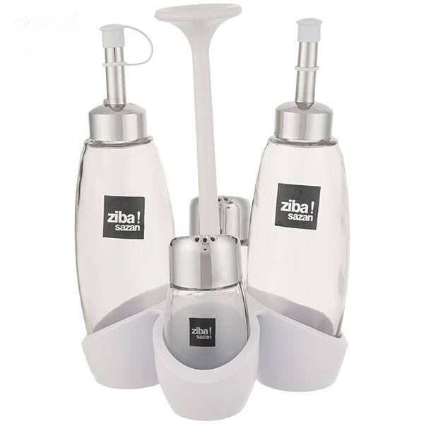 مناسب برای نگهداری انواع مایعات و روغنهای خوراکی دارای ورودی هوا بر روی درپوش برای خروج راحتتر مایعات و پایه نگهدارنده پلاستیکی جنس آن شیشه و پلاستیک و روکش کروم