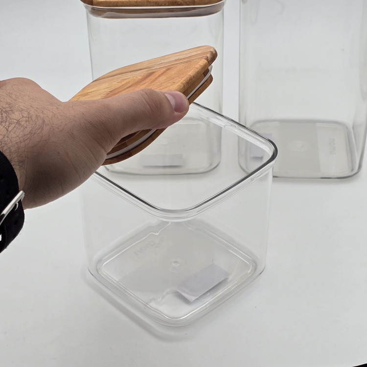 وجود بانکه حبوبات برای هر محیط آشپزخانه ای یک امر ضروری است. بانکه های حبوبات باید از وزن سبکی برخوردار باشند تا در جابجایی و قرار گیری در کشو و کابینت ها با مشکل مواجه نشوند بانکه های شیشه ای امروزه از وزن زیادی برخوردار هستند و با ضربه و یا افتادن دچار شکستن و صدای بسیار زیادی هستند. این مدل بانکه ها از جنس بدنه آکریلیک ساخته شده است و کیفیت بسیار خوبی دارد به هبچ عنوان شکننده و یا سنگین نیستند و از تمامی استاندارد های جهانی مواد غذایی برخوردار هستند. ظاهر زیبا و شکیل آن ها با ساختار درب چوبی زیبایی بسیار منحصر به فردی به محیط آشپزخانه شما می دهد.