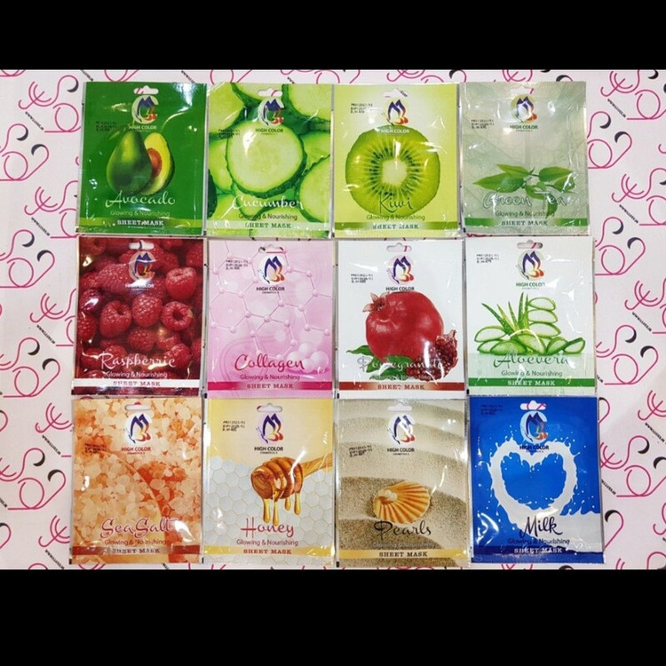 ماسک ورقه ای یا نقابی های کالر HIGH COLOR مدل شیت ماسک sheet mask تعداد 12 عدد