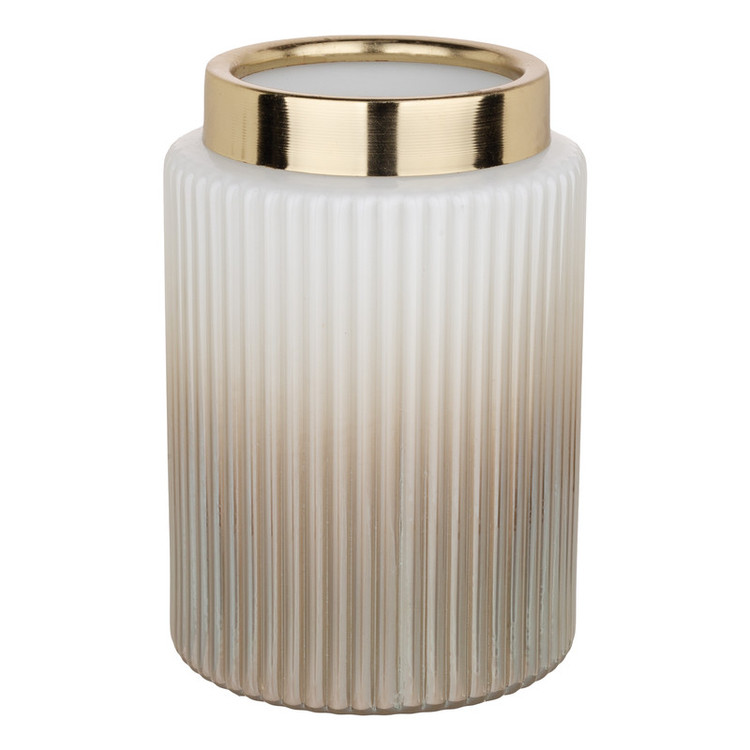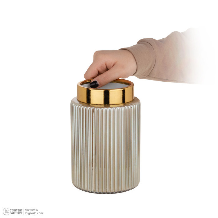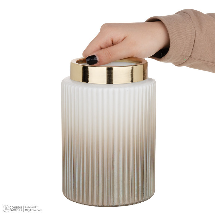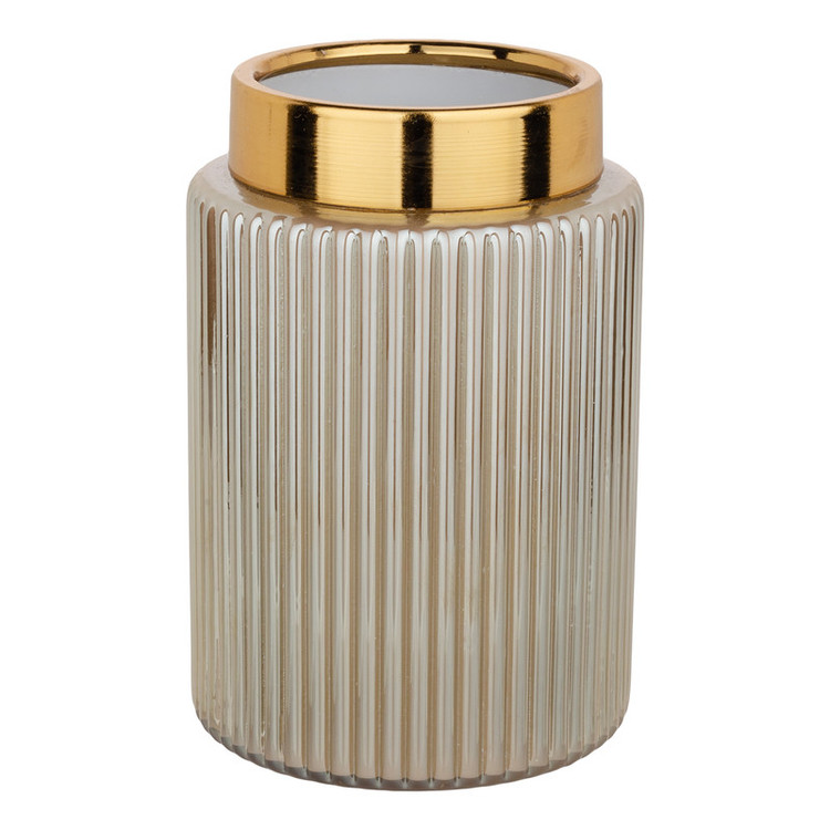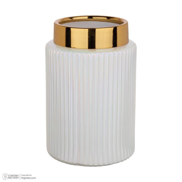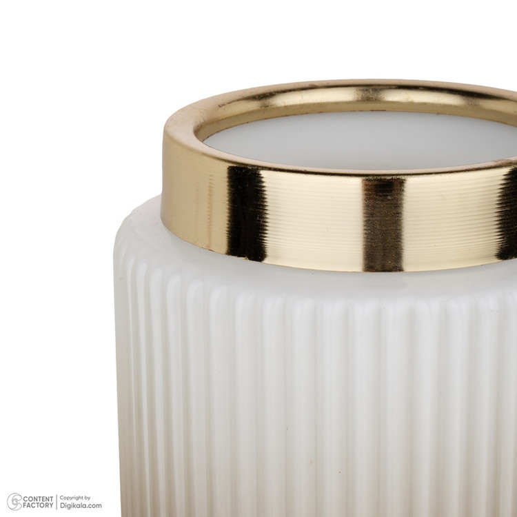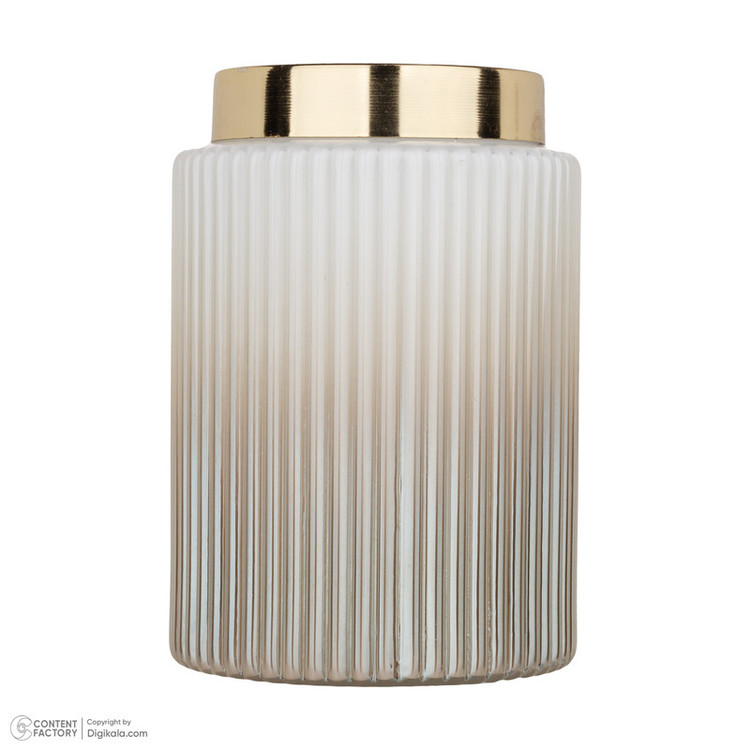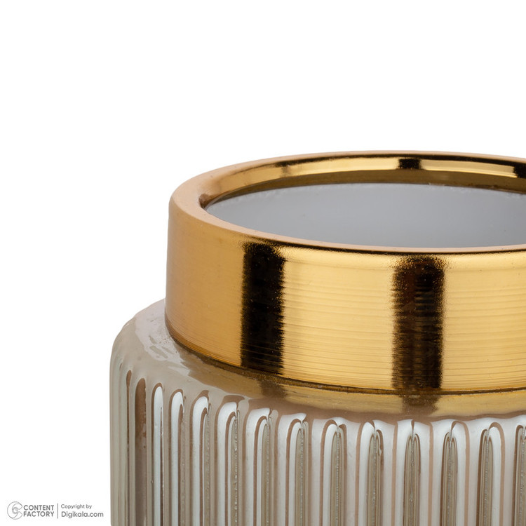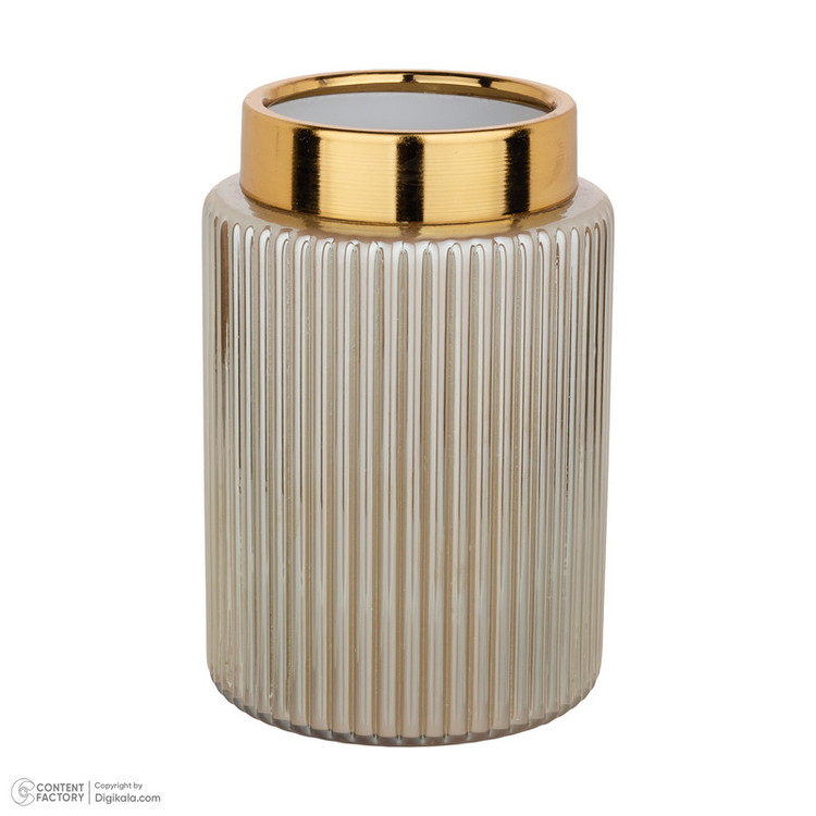 جنس این گلدان از شیشه است رنگ کوره ای و ثابت دارد جنس طوقه لبه گلدان فلز آبکاری شده به رنگ طلایی است