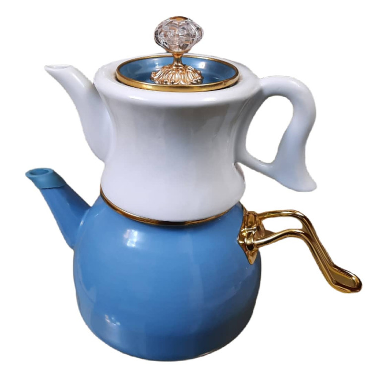 قوری و کتری برند dufy تولید کشور ترکیه است. کتری لعابی با ظرفیت 2 لیتر و قوری چینی سفید با درب لعابی همرنگ کتری با ظرفیت یک لیتر می باشد. قابلیت استفاده بر روی انواع اجاق گازی و برقی و همچنین قابل شستشو در ماشین ظرفشویی می باشد. گرما و حرارت بر روی دسته کتری تاثیر گذار نیست و به هیچ عنوان محصوب تغییر رنگ نخواهد داد. محصولات مستقیما توسط فروشنده از کشور ترکیه وارد شده است.