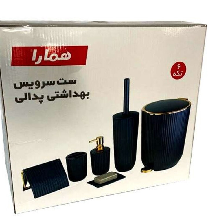 ست بهداشتی پدالی زبرا همارا، این ست از جنس پلاستیک است و دارای سطل پدالی، فرچه، جا مایع، جا مسواکی، جا صابونی، جا دستمال رولی می باشد. مناسب سرویس بهداشتی و همچنین گزینه مناسبی برای جهیزیه است.