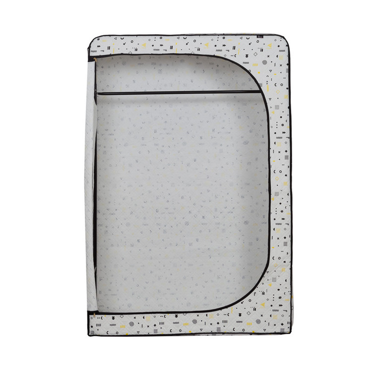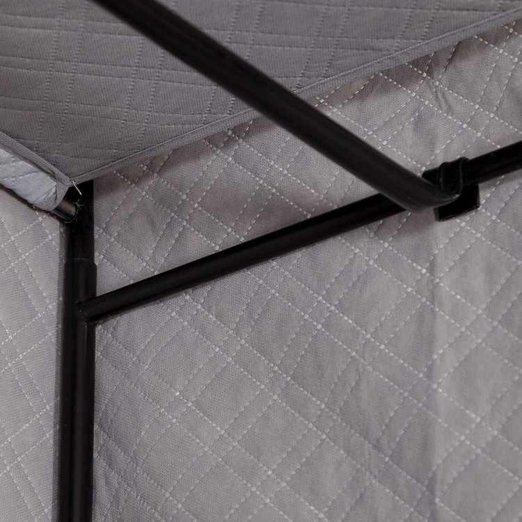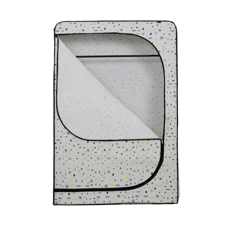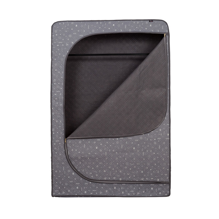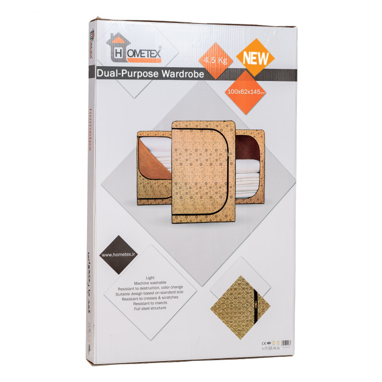 کمد دوکاره هومتکس یا کمد جارختخوابی / آویز هومتکس از جنس پارچه و بسیار سبک است. اسکلت داخلی این نظم دهنده از آلیاژ آهن است که نگرانی هایی مانند تغییر شکل ظاهری جارختخوابی یا مقاومت و استحکام را از بین می برد. در حالت کمد رختخواب وسایل خواب، ارگانایزری مناسب برای نظم دهی و قرار دادن رختخواب و سایر منسوجات خانگی مانند، پشتی، پتو، حوله، روتختی و نواع کاور و روکش است. در طراحی جدید کمد رختخواب با هدف افزایش هرچه بیشتر کاربرد محصولات، میله آویز در وسط کمد در نظر گرفته شده. این میله به راحتی قابل نصب است و می تواند کمد رختخواب شما را به یک کمد آویز با تحمل وزن زیاد تبدیل کند. همچنین، شما می توانید در هر زمان به آسانی میله را برداشته و اشیاء و وسایل خود مانند تشک، پتو، بالشت و موارد مشابه را در کمد جایگزین کنید و نظم دهید. لایه داخلی پارچه سه لایه این نظم دهنده در برابر ساییدگی، پوسیدگی، تغییر رنگ و حشرات مقاوم است.