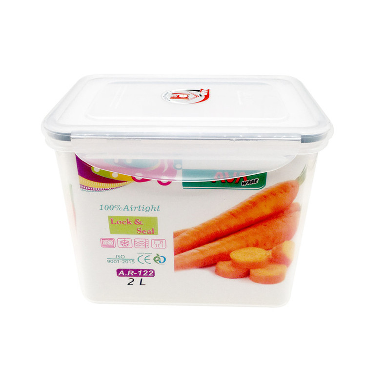 ظرف فریزری و مایکروویوی چهار قفله با درکاملا کیپ شو با گنجایش2000 سی سی متناسب با استانداردهای مواد غذایی و بهداشتی و تولید شده است. قابلیت بازیافت و حفظ محیط زیست را دارد. دماهای پایین و بالا را تحمل کرده و قابلیت استفاده در فریزر و مایکروویو را دارا میباشد. قابلیت استفاده مجدد در مصارف خانگی را دارد.