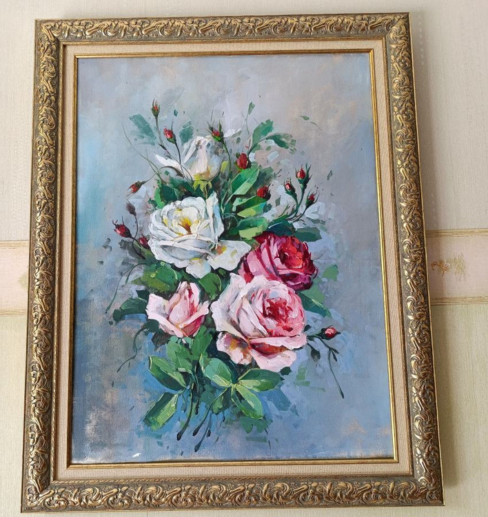 نقاشی رنگ روغن کار شده با دست ابعاد 50در 70با قاب ارسال میشود