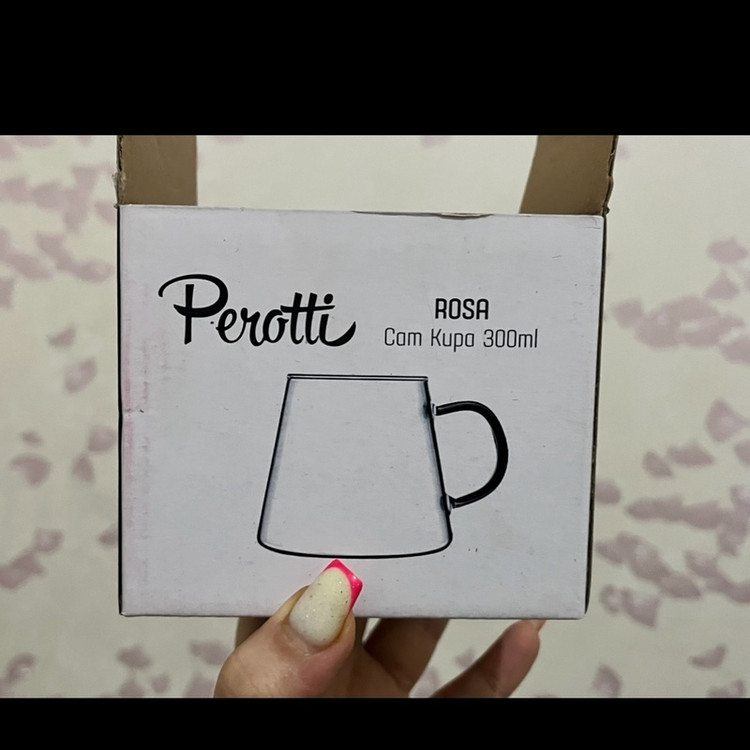 لیوان پیرکس 300میل perotti ترکیه دسته رنگی صورتی