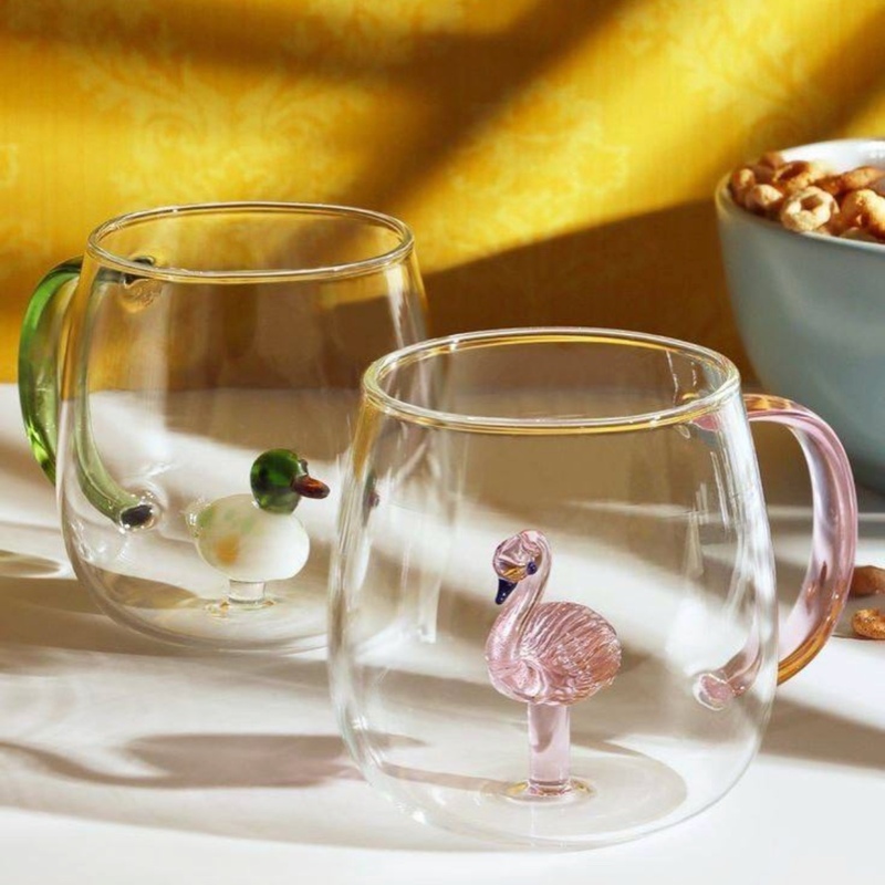 لیوان پیرکس دسته رنگی طرح قو 😍😍
