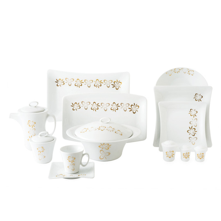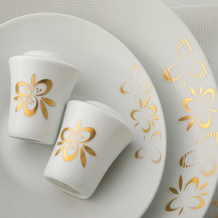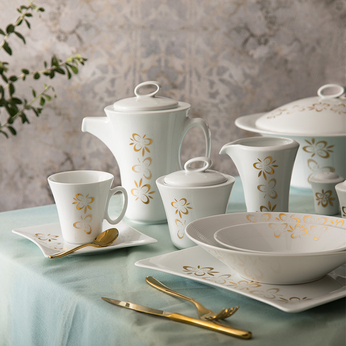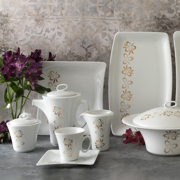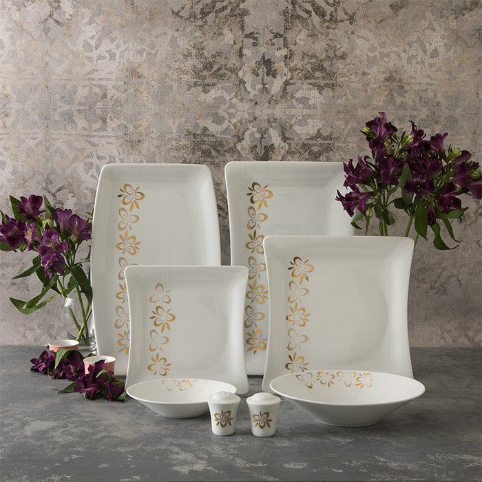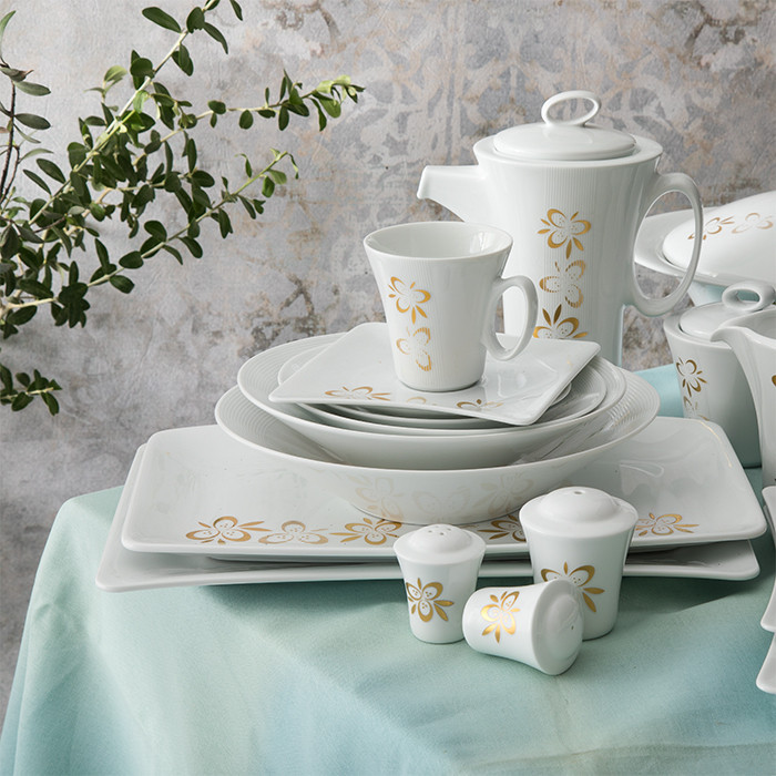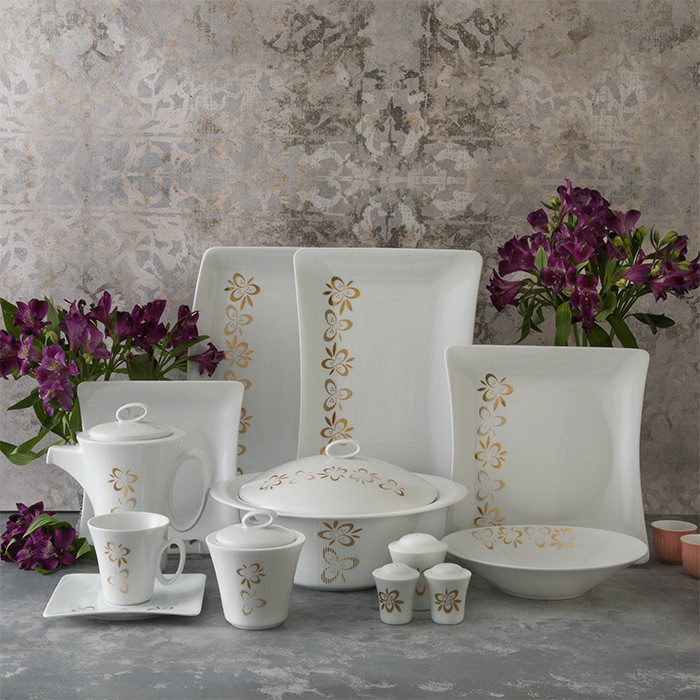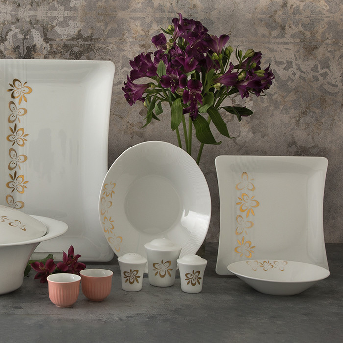 سوپخوری , ظرف سالاد , سالادخوری , دیس , بشقاب غذاخوری , بشقاب خورشخوری , پیشدستی , قوری چایخوری , فنجان , نعلبکی , قندان , شکرریز , نمکپاش و فلفلپاش , پیاله