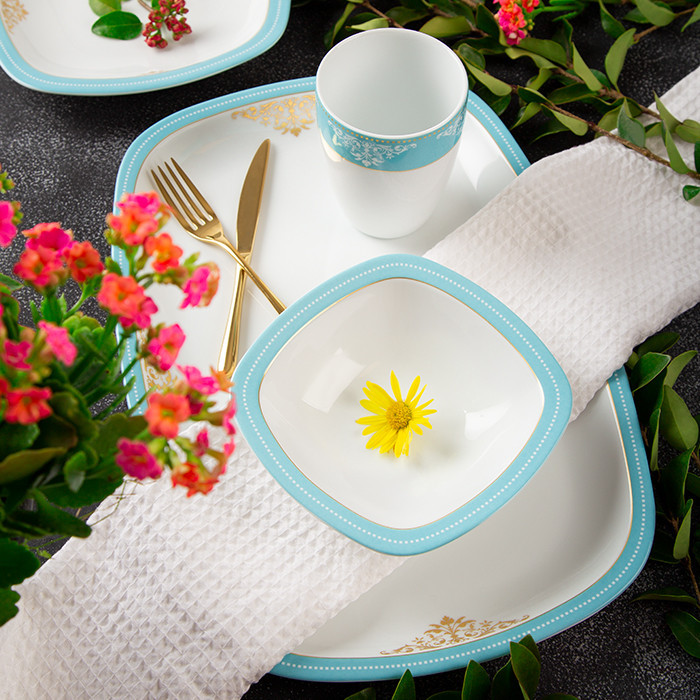 سرویس غذاخوری 98 پارچه والندورفر مدل کواترو آرمیتاژ فیروزه ای A پلاس