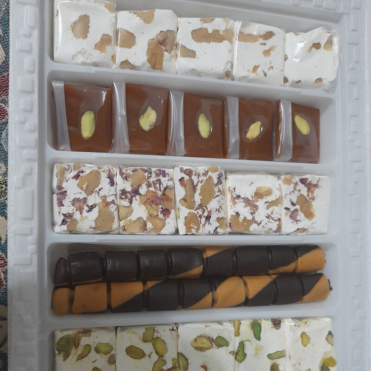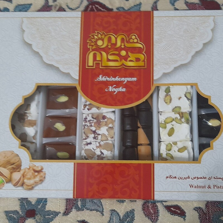 حاوی :شکر ،سفیده تخم مرغ ،گلاب ،گردو ،آرد گندم