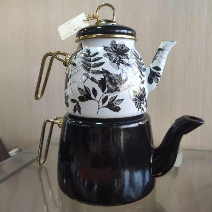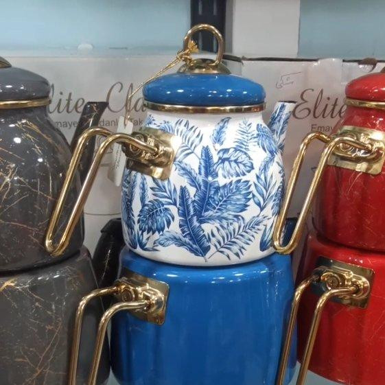 کتری وقوری چدن لعابی ترکیه ای پاچی گلدار