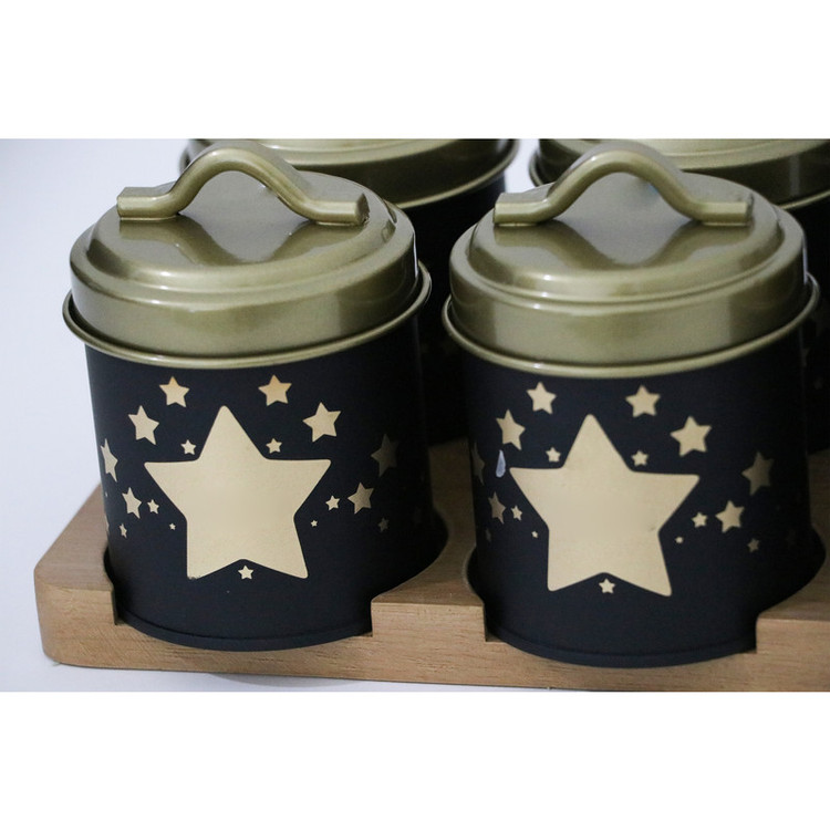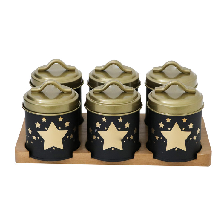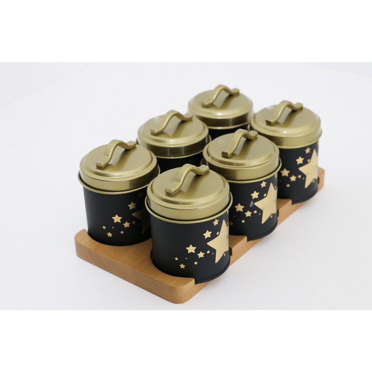 ست 6 تکه جا ادویه یا پا سماوری بسیار شیک و با کیفیت دارای یک استند چوبی جهت قرار گیری جا ادویه ای ها باز شدن راحت درب جا ادویه ای بدون هیچ گونه سختی یا فشار خاصی قابلیت شستشو دارد.