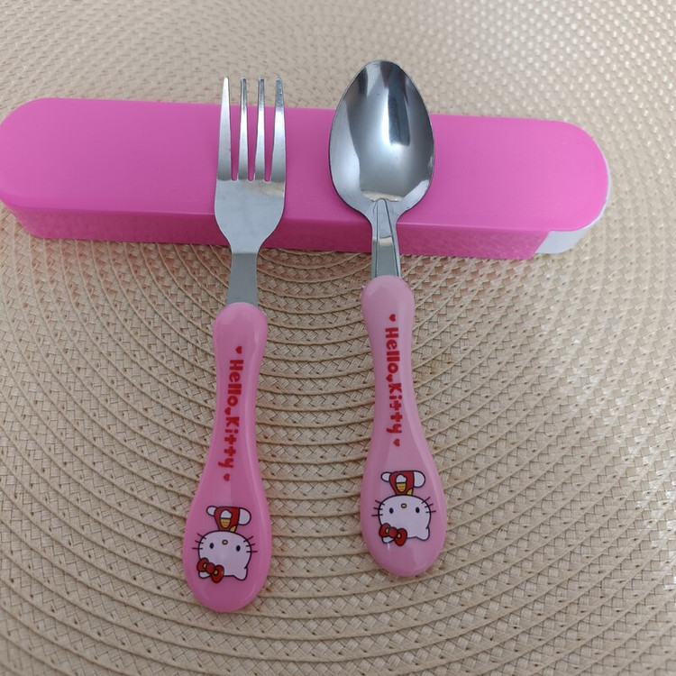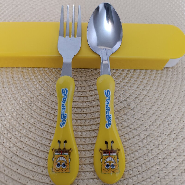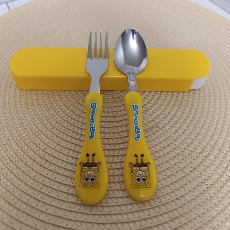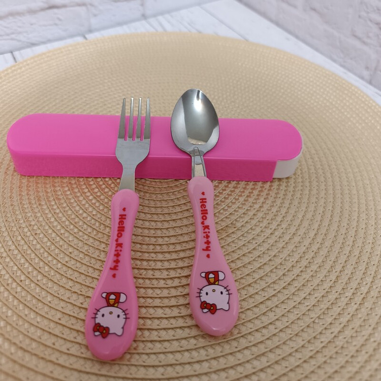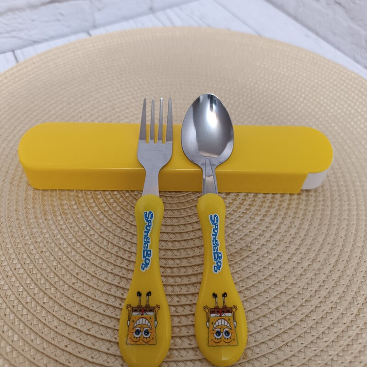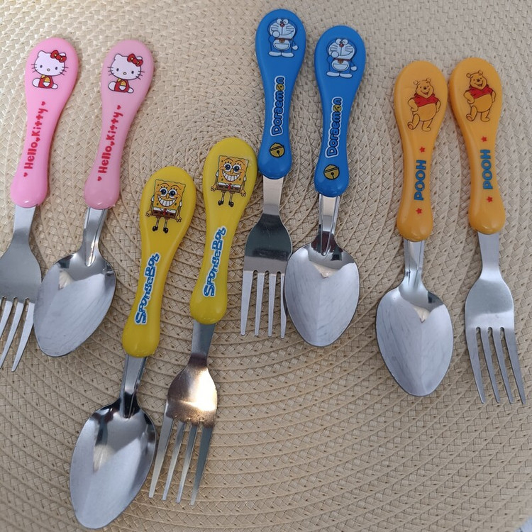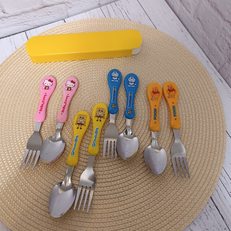 قاشق و چنگال کودک طرحهای کارتونی وارداتی با جعبه شیک دسته پلاستیک abs