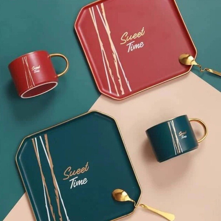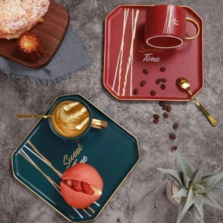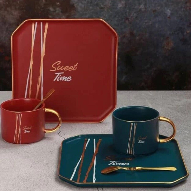 فنجون و پیشدستی در دو رنگ قرمز و سبز وارداتی