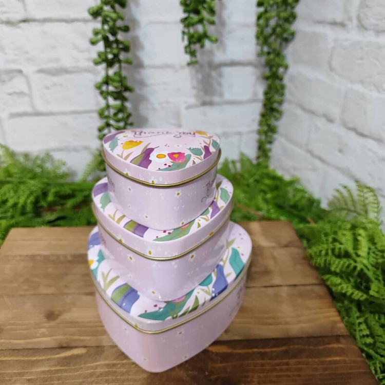 جعبه فلزی سه سایز مدل قلبی رنگ صورتی گلدار