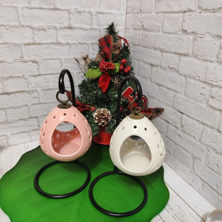 جا شمعی سرامیکی با پایه فلزی در دو رنگ صورتی و سفید مناسب برای شمع وارمر