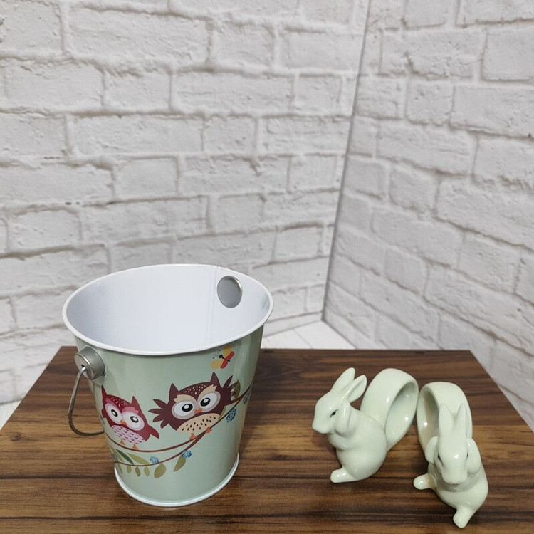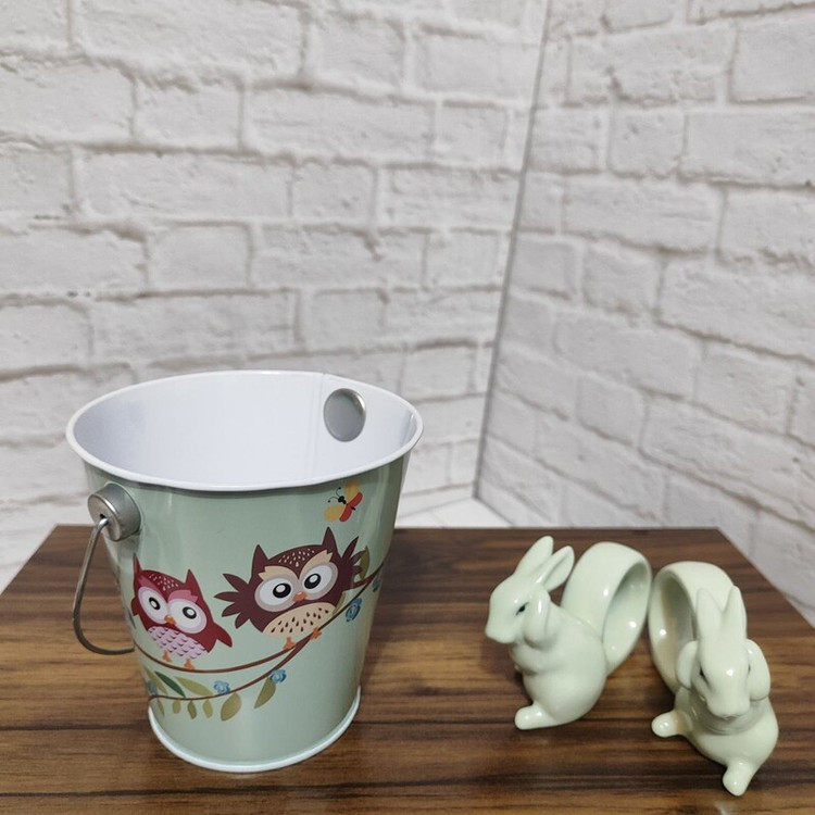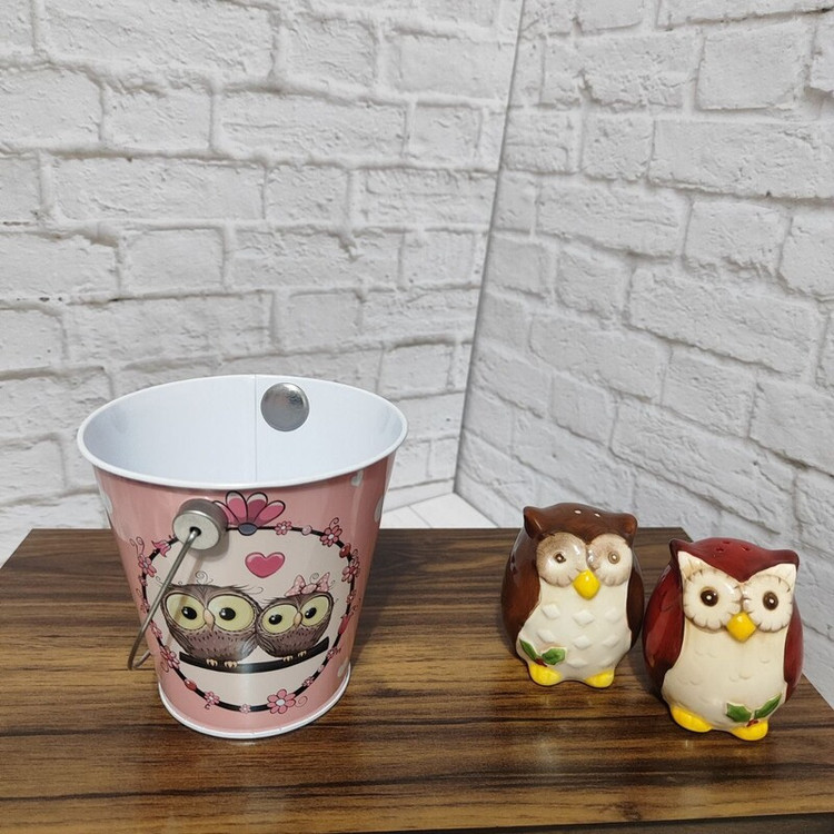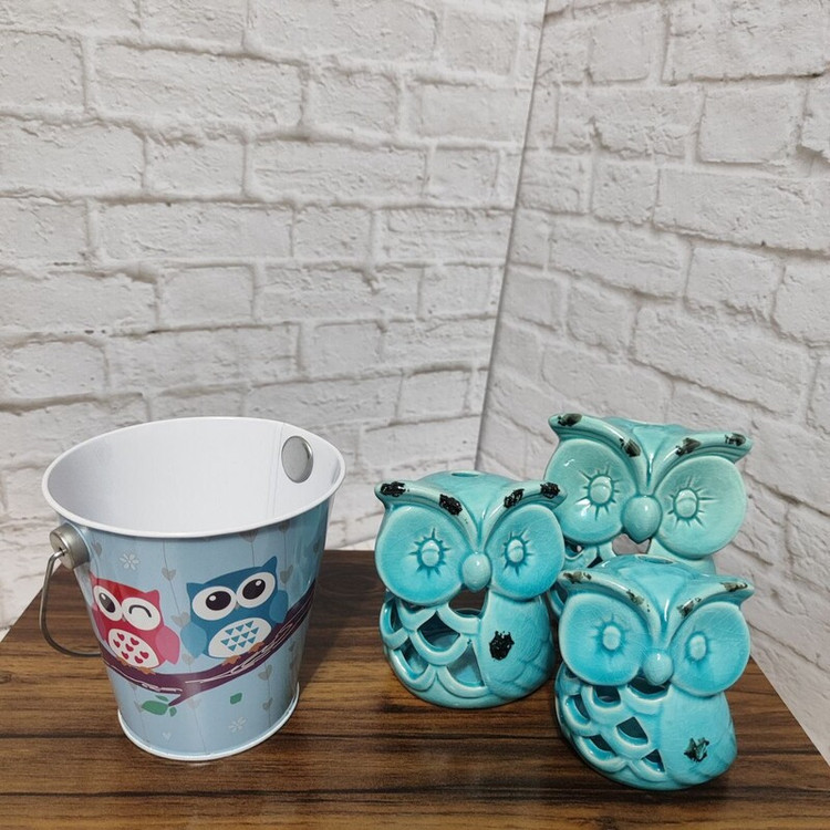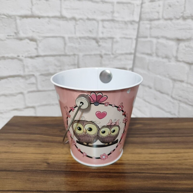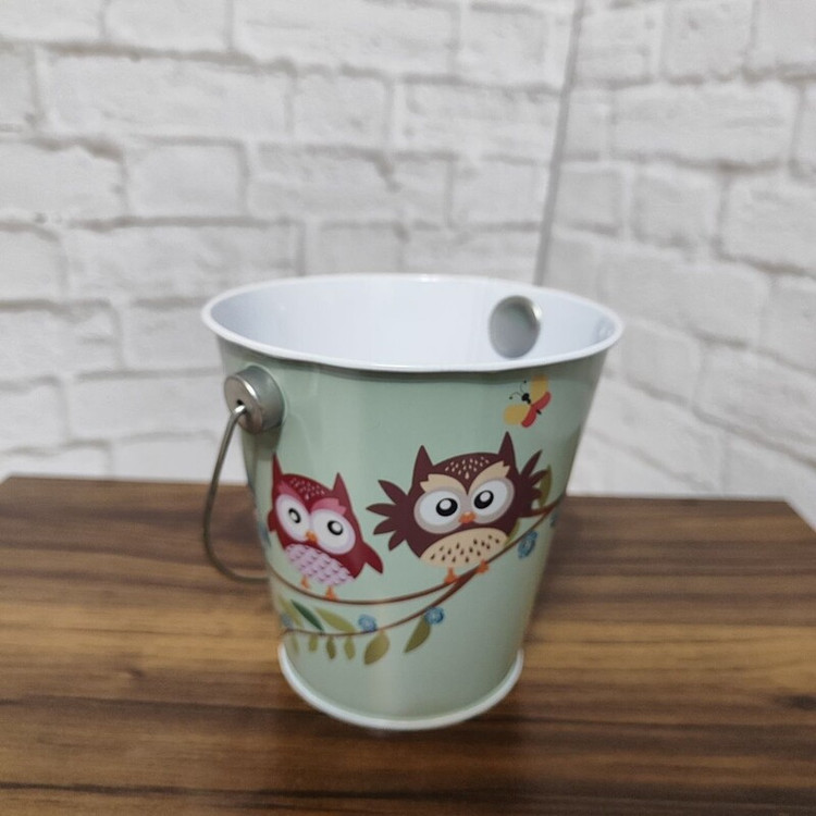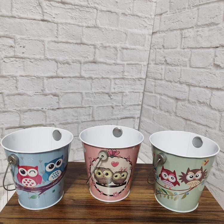 سطل فلزی دسته دار در سه رنگ و طرح جغد با مزه