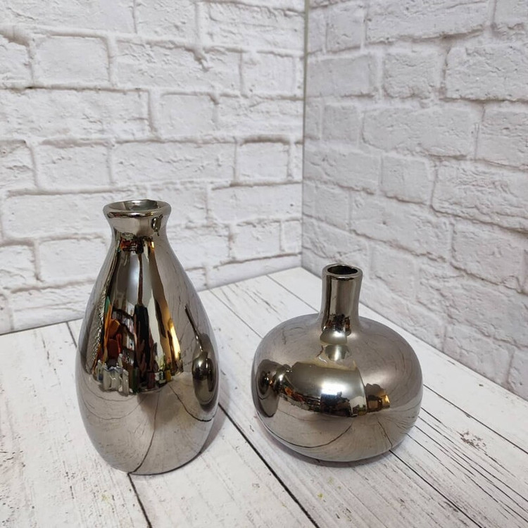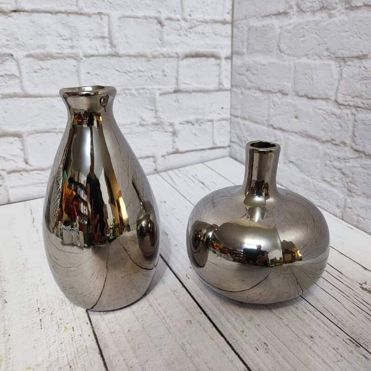 گلدان جفتی رنگ سیلور جنس سرامیک ابکاری