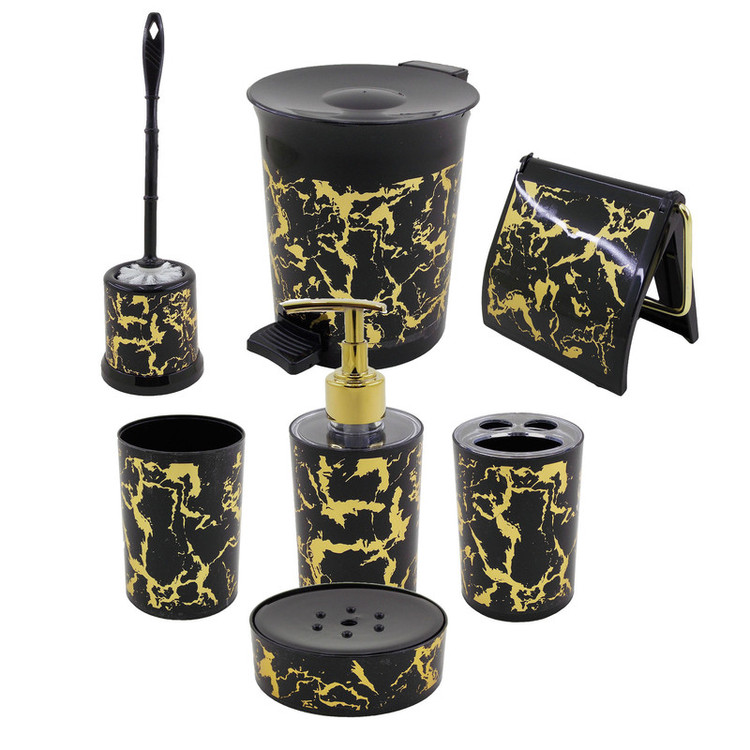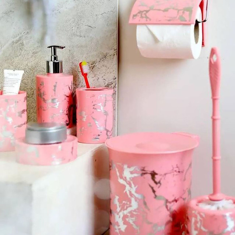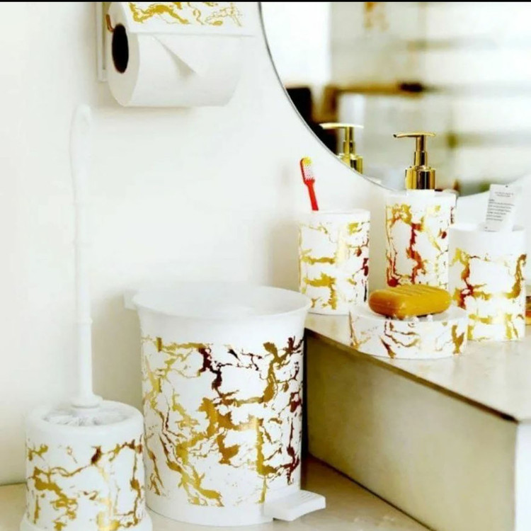 ابعاد سطل 17.5x17.8x21 ابعاد فرچه 11x11x41 جا مایع دستشویی 7.5 x 7.5 x 18 استند لوازم آرایشی 7.5 x 7.5 x 11 جامسواکی 7.5 x 7.5x 11 جا صابونی 1.5 x1.5 x 4 13x13x11 سانتیمتر