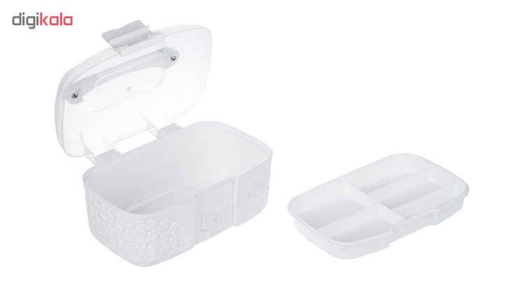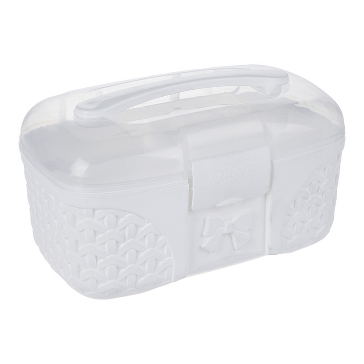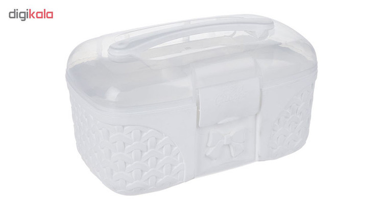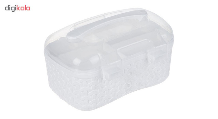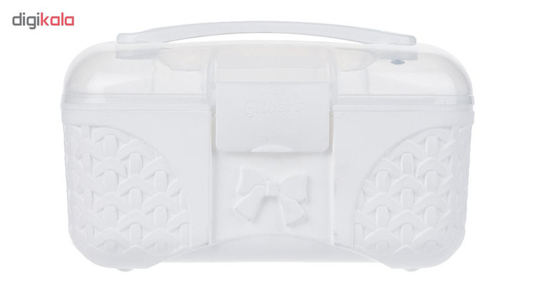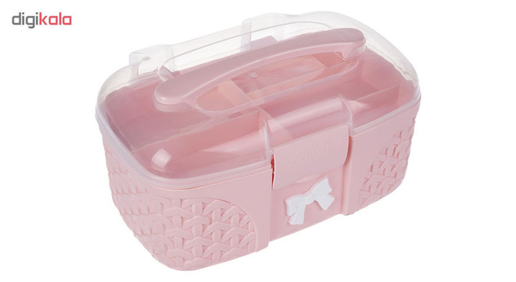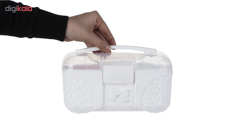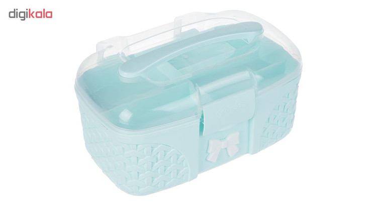 دارای 6 محفظهی مجزا شامل یک محفظهی اصلی و 5 محفظه روی سینی بالایی مناسب برای نگهداری از قیچی، نخ، سوزن، متر و دیگر لوازم خیاطی دارای دستگیره برای حمل آسان دارای چفت پلاستیکی