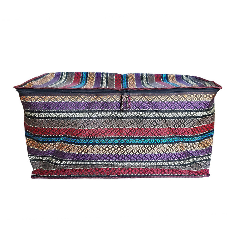 جاجیم جنس ضخیم بسیار باکیفیت و مرغوب بیشترین کاربرد جهت جا رختخواب وزن 860 گرمی زیپ مقاوم دارای دو ماشین زیپ نوار دور دوزی شده از جنس پلی استرپنبه ضخیم جهت مقاومت بالا عکس های فوق کاملا از خود کالا میباشد