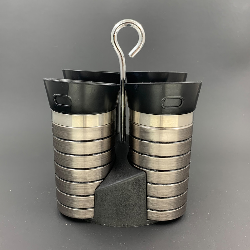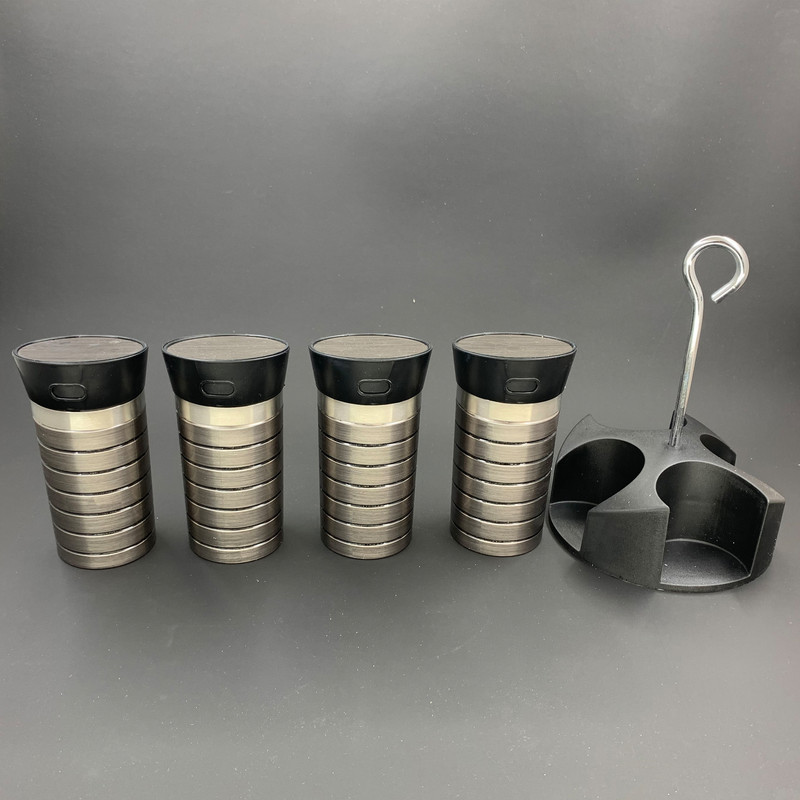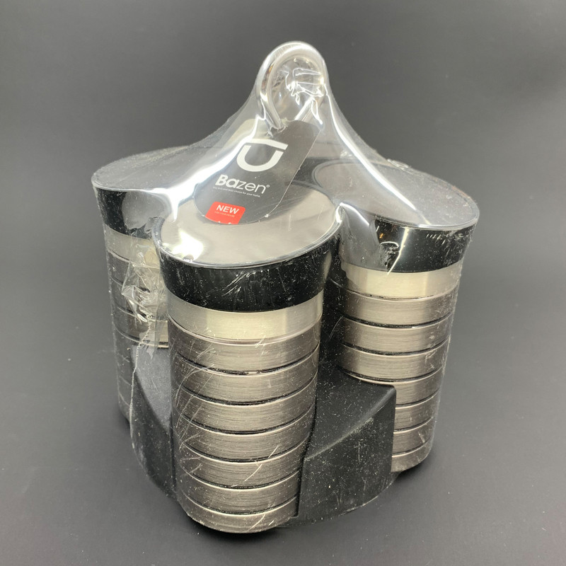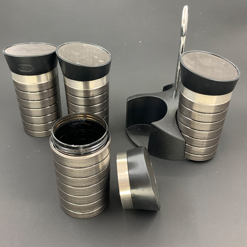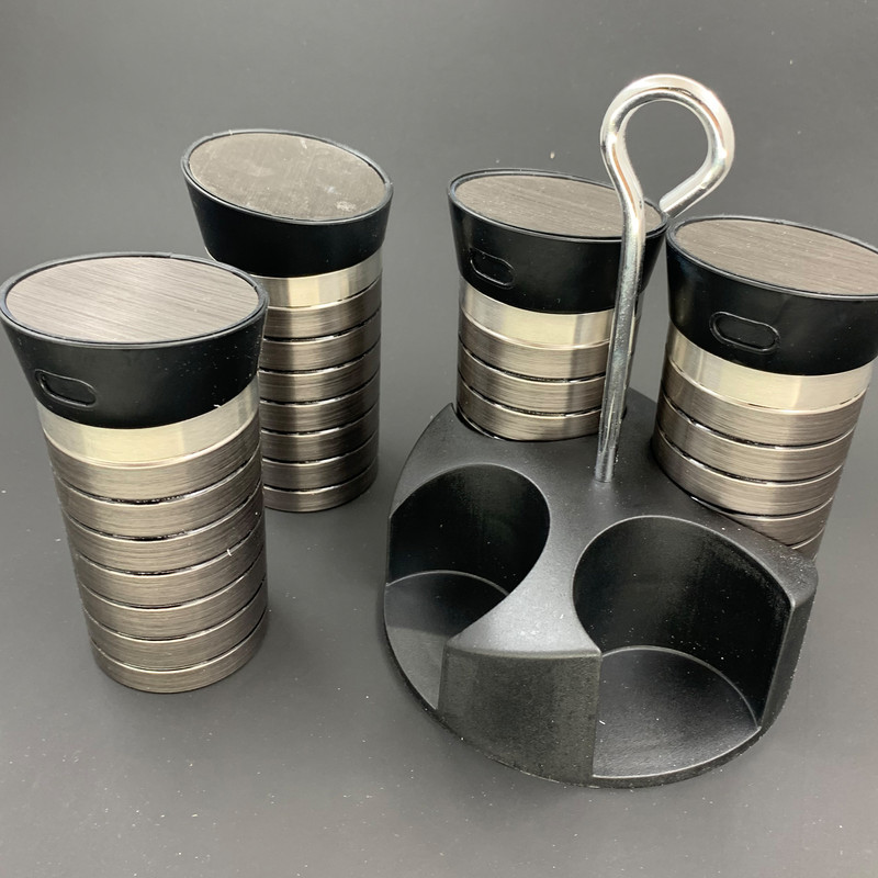 شامل یک پایه نگهدارنده و چهار عدد جای ادویه قطر داخلی هر عدد جای ادویه: 5 سانتیمتر ارتفاع داخلی هر عدد جای ادویه: 8.5 سانتیمتر ارتفاع جای ادویه با در: 12 سانتیمتر جنس پلاستیک با طرح استیل