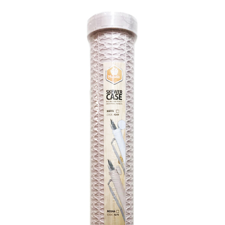 غلاف سیخ هوم کت دارای بند بوده برای حمل راحتتر و درب برای بستن غلاف و جلوگیری از ریختن سیخ ها