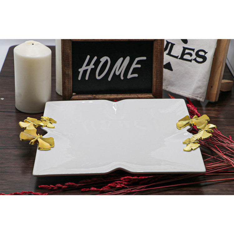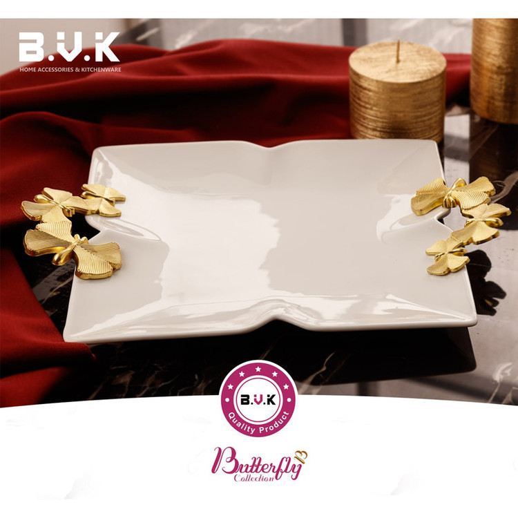 شیرینی خوری مربع طرح Butterfly برند بی.وی.کی بسیار شیک و مدرن جنس بدنه : سرامیک - مناسب برای سرو شیرینی و تنقلات و....