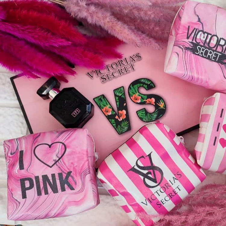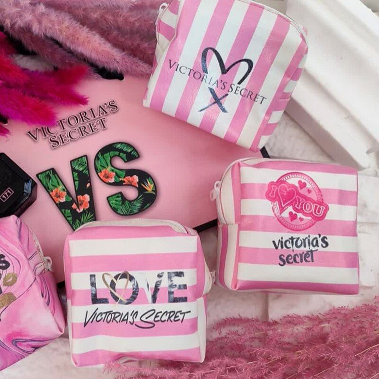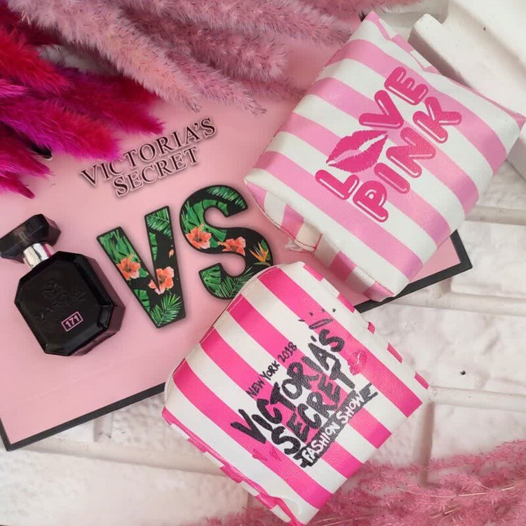 کیف لوازم آرایش کیف پد ارایشی طرح ویکتوریا سکرت جنس چرم مصنوعی